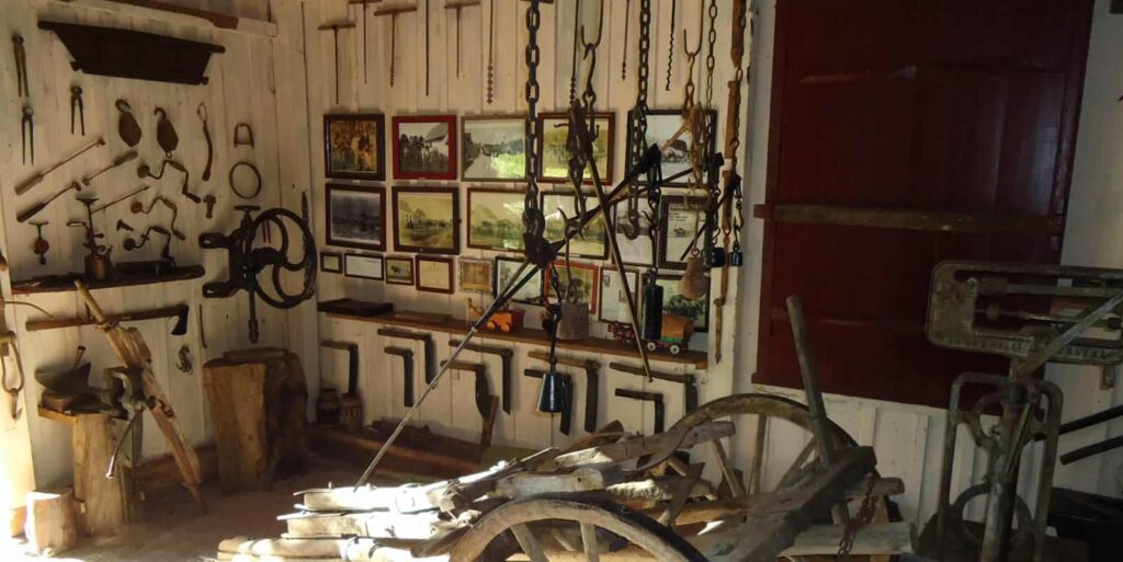 A arte de trabalhar o ferro incandescente para dar forma aos mais variados utensílios e equipamentos de trabalho. A habilidade e o conhecimento revividos em um espaço repleto de ferramentas e onde o fogo estava sempre vivo para receber as chapas de ferro a serem moldadas pelas mãos hábeis dos ferreiros para ganhar forma.